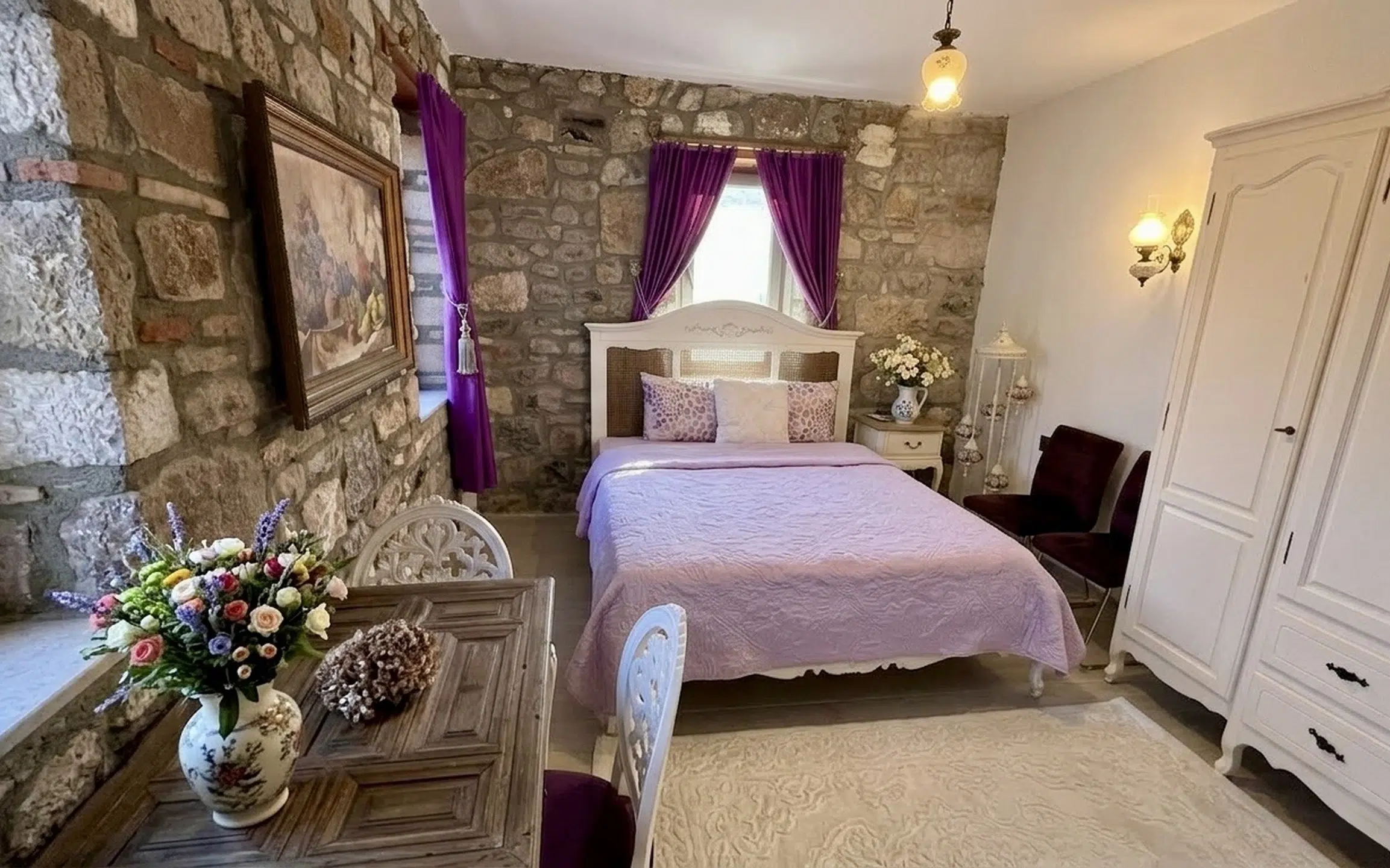 Her detayını kendi ellerimizle seçtik; çünkü burası bir yatırım değil, bir hayalin vücut bulmuş hâli. Taş odalarımız geçmişin izlerini taşırken, konforlu detaylarla bugünü sarıp sarmalıyor. Sabah kahvaltılarımızda ise sadece lezzet değil, sevgi de var: yerel üreticilerden gelen peynirler, ev yapımı reçeller, taptaze yumurtalar ve sıcacık sohbetler…